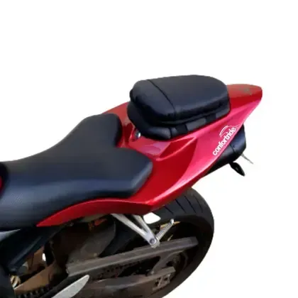 Uma foto em close-up do cabeçote de uma guitarra de cor escura com seis tarraxas contra um fundo de madeira desfocado.